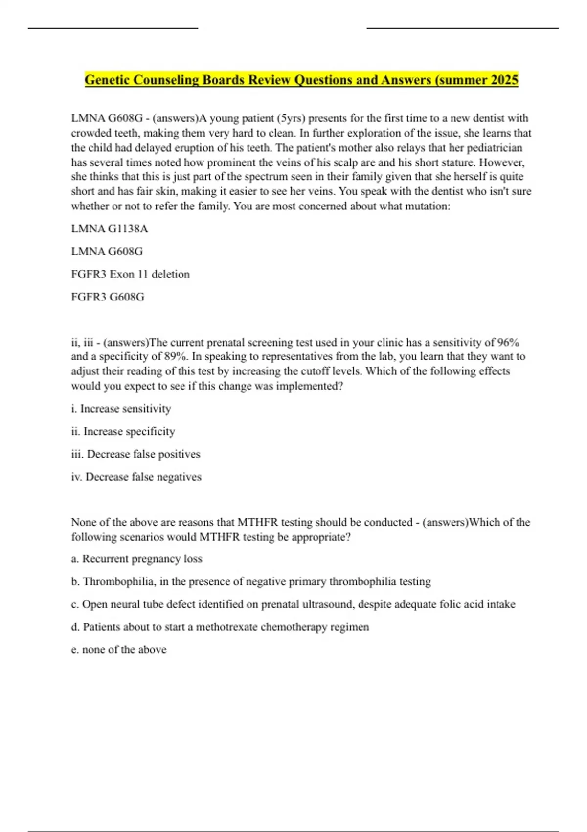 Genetic Counseling Boards Review Questions and Answers (summer 2025