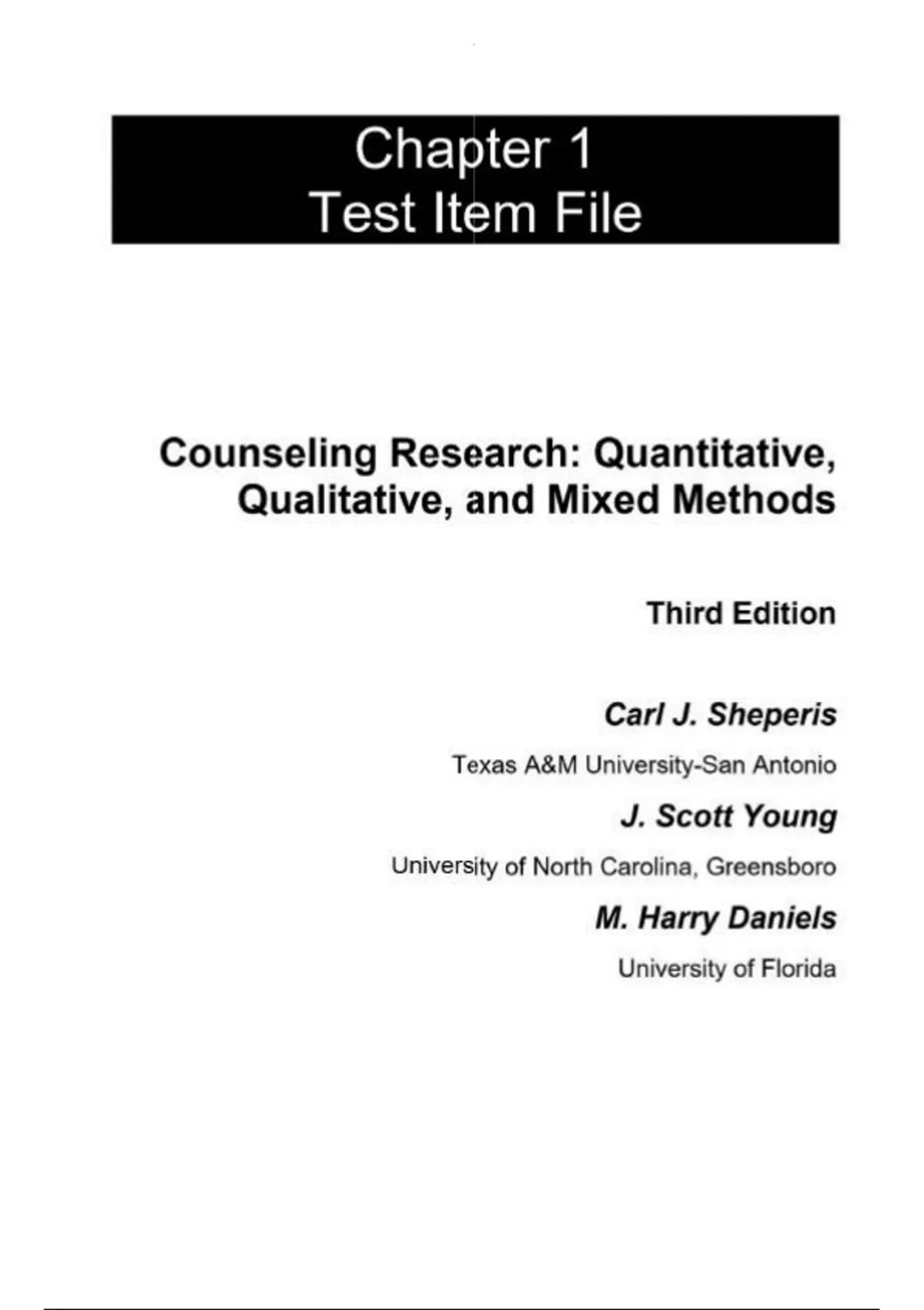 Test Bank For Counseling Research Quantitative, Qualitative, and Mixed Methods, 3rd Edition by Carl J. Sheperis J Scott Young M Harry Daniels Chapter 1-18