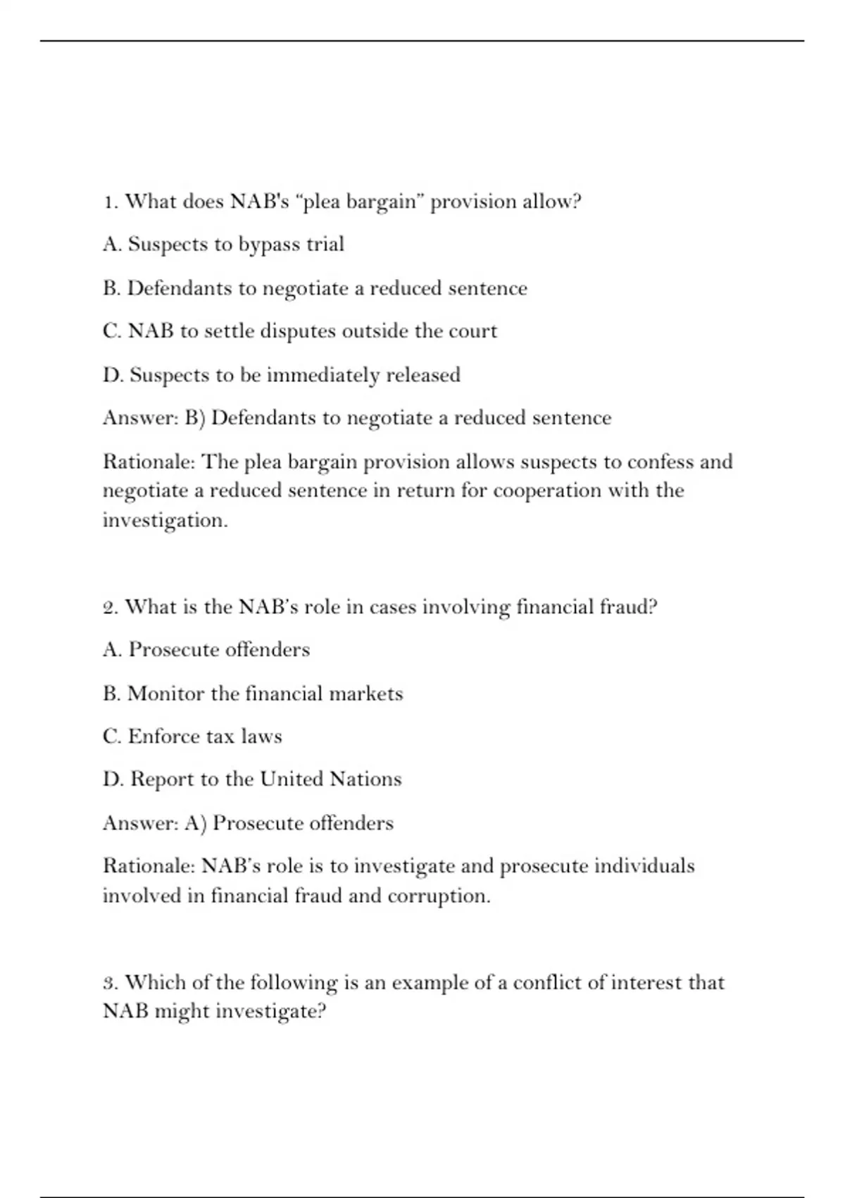 Rationale: NAB’s role is to investigate and prosecute individuals