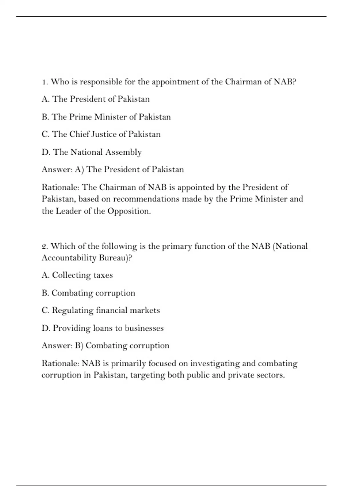 6. NAB's Accountability Courts are responsible for: A) Hearing cases