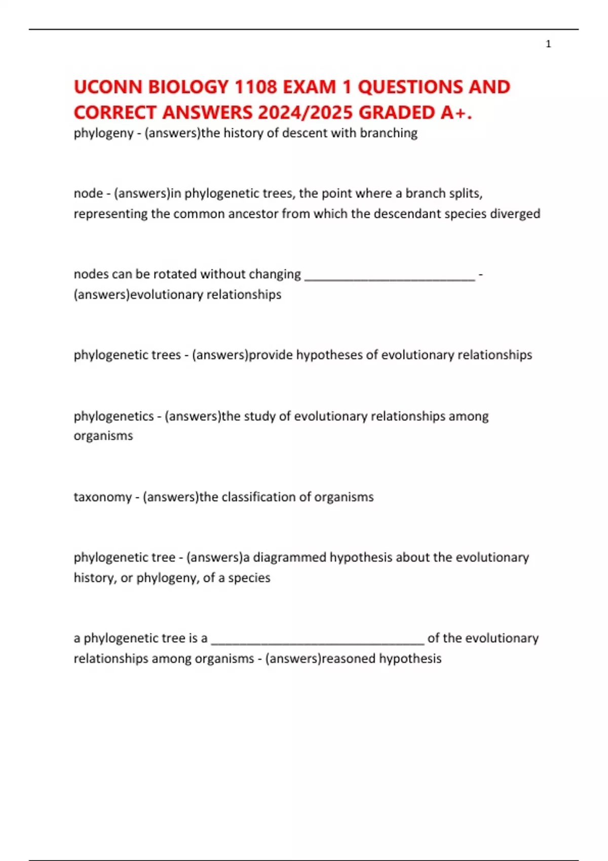 UCONN BIOLOGY 1108 EXAM 1 QUESTIONS AND