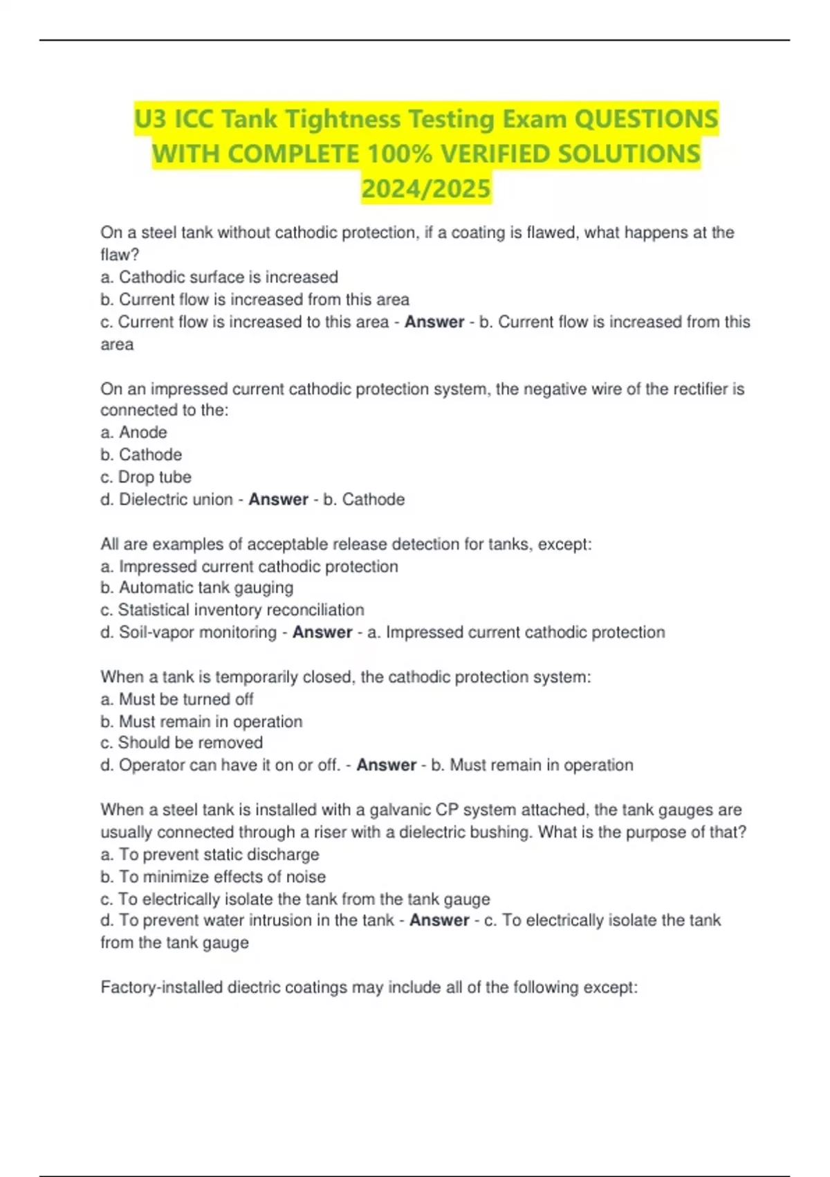 U3 ICC Tank Tightness Testing Exam QUESTIONS WITH COMPLETE 100% VERIFIED SOLUTIONS 2024/2025