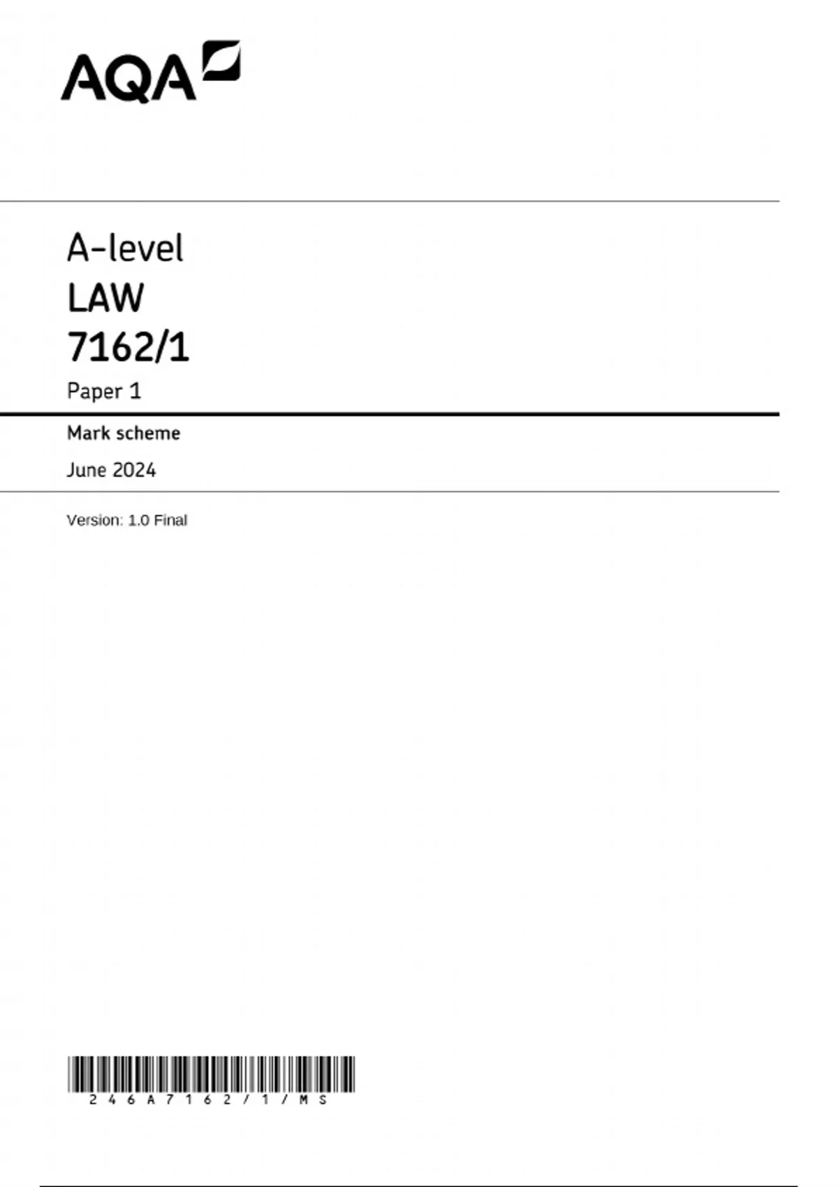 AQA A LEVEL LAW MARK SCHEME PAPER 1 2024 (7162/1)