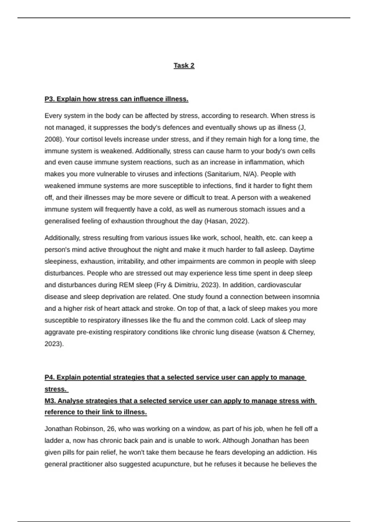 M3. Analyse strategies that a selected service user can apply to manage stress with