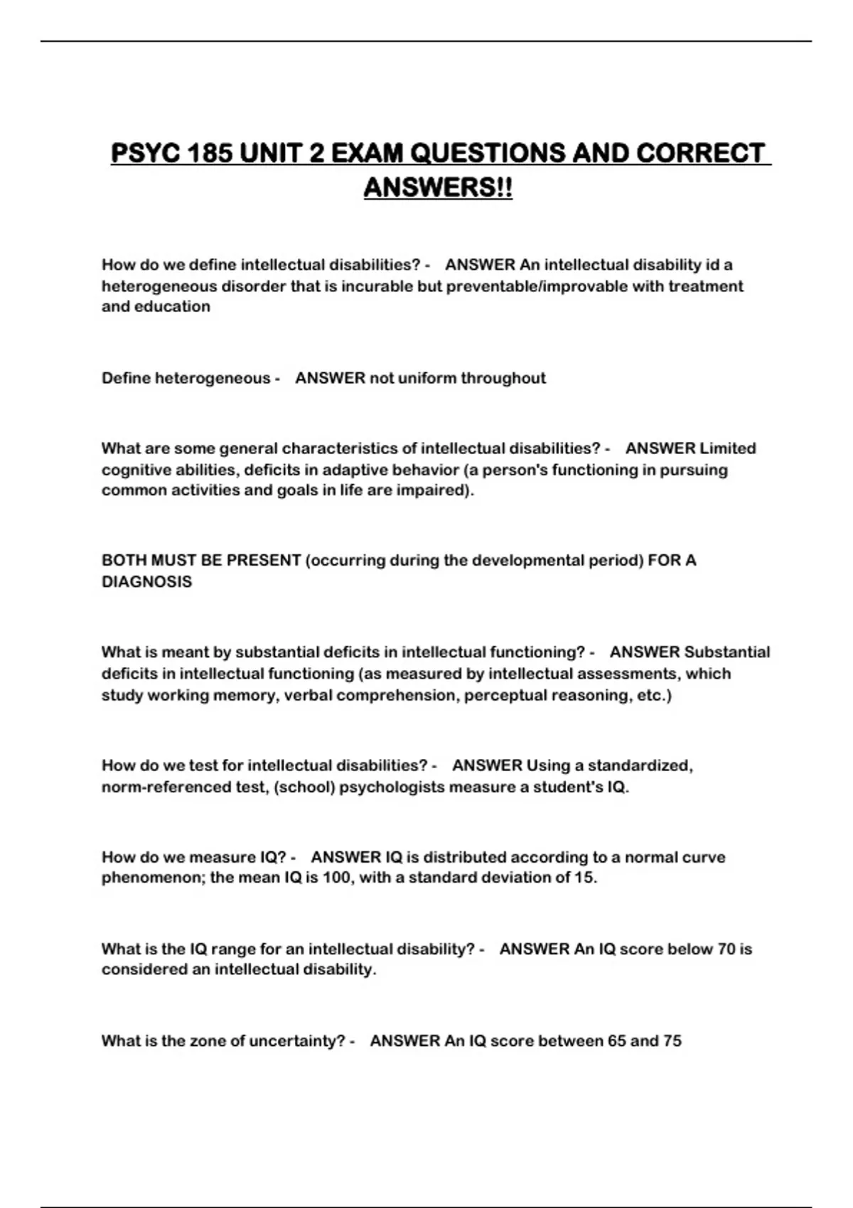PSYC 185 UNIT 2 EXAM QUESTIONS AND CORRECT
