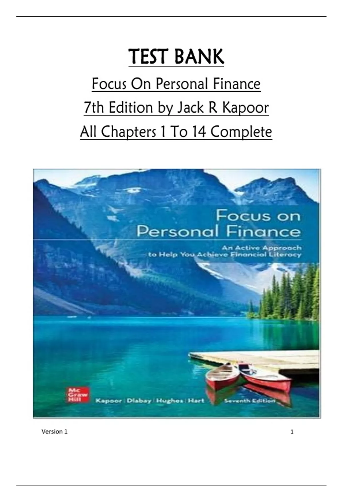 TEST BANK for Focus On Personal Finance 7th Edition by Jack R Kapoor All Chapters 1 To 14 Complete GRADED A+ PDF
