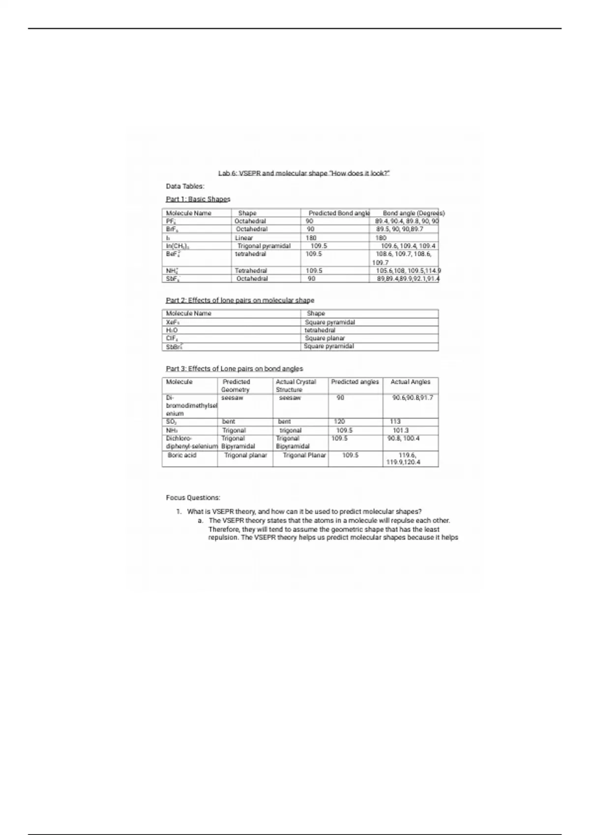Lab 6: VSEPR and molecular shape “How does it look?”
