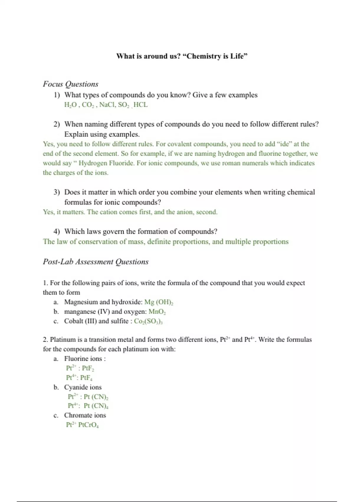 3)​ Does it matter in which order you combine your elements when writing chemical