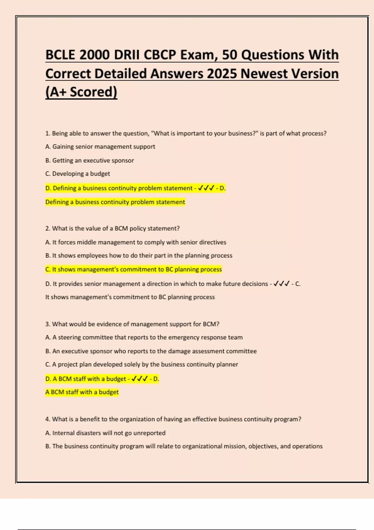 D. Defining a business continuity problem statement - ✔✔✔ - D.