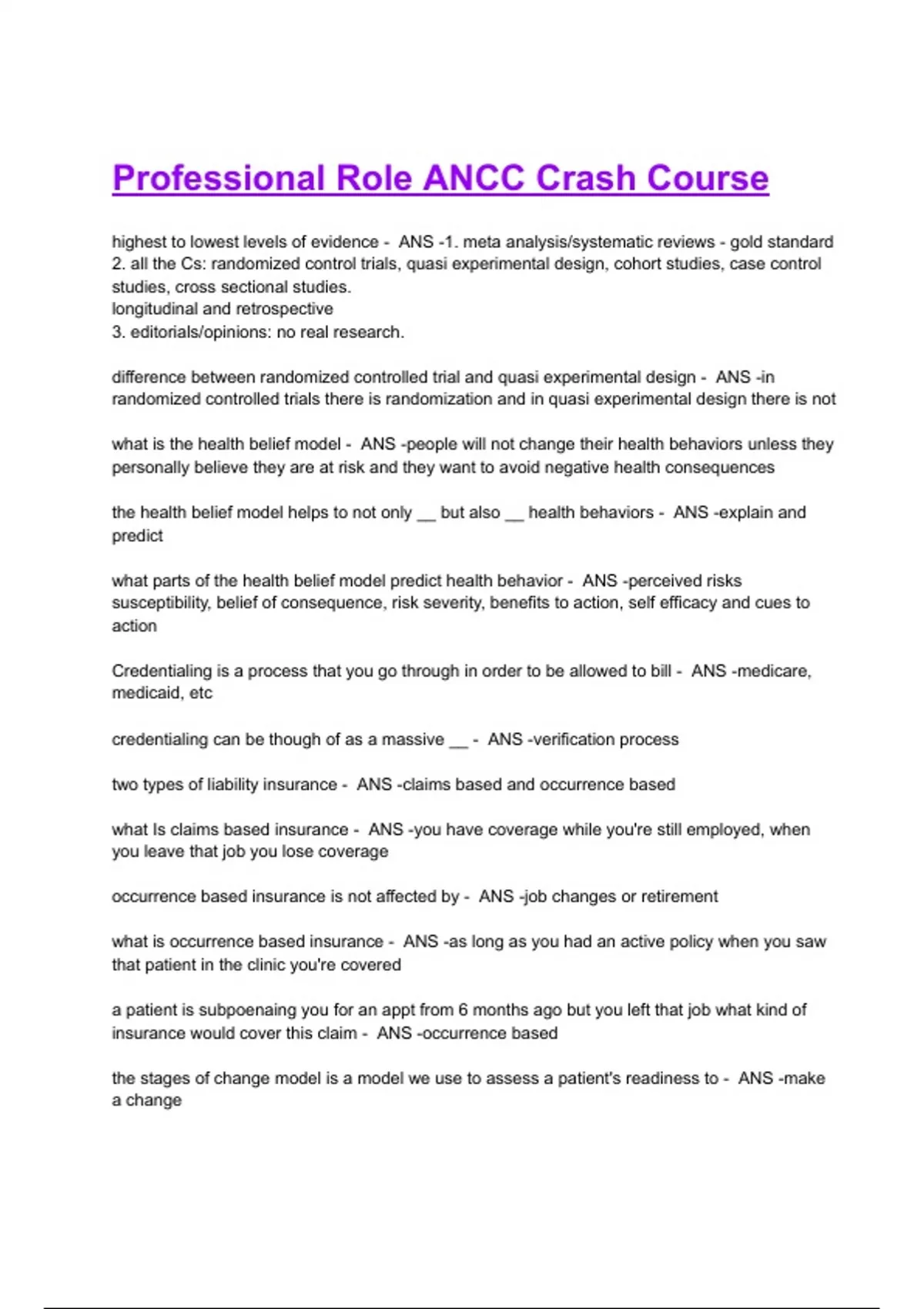 Professional Role ANCC crash course Exam Questions with correct Answers 2025/2026( A+ GRADED 100% VERIFIED).