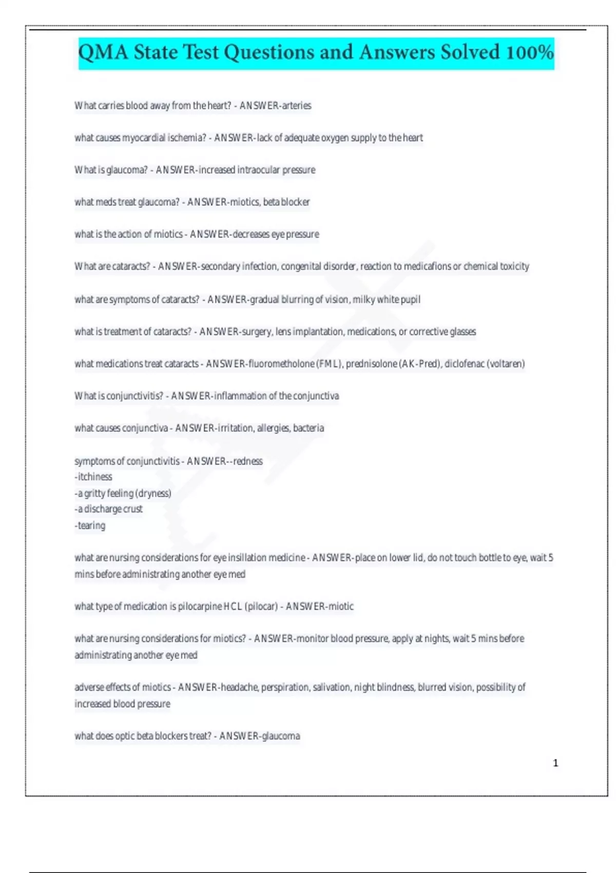 what is treatment of cataracts? - ANSWER-surgery, lens implantation, medications, or corrective glasses
