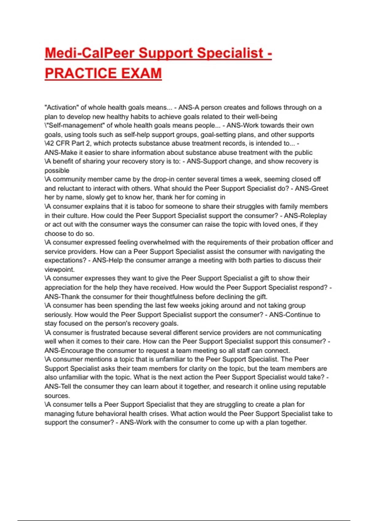 Medi-CalPeer Support Specialist - PRACTICE EXAM 2025/2026 Questions With Completed & Verified Solutions.