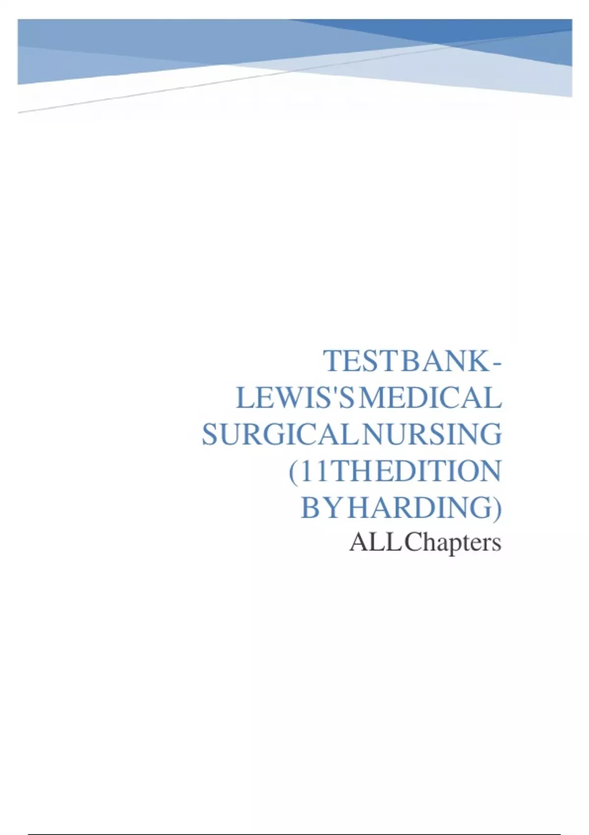 TEST BANK - LEWIS'S MEDICAL SURGICAL NURSING (11TH EDITION BY HARDING) ALL Chapters