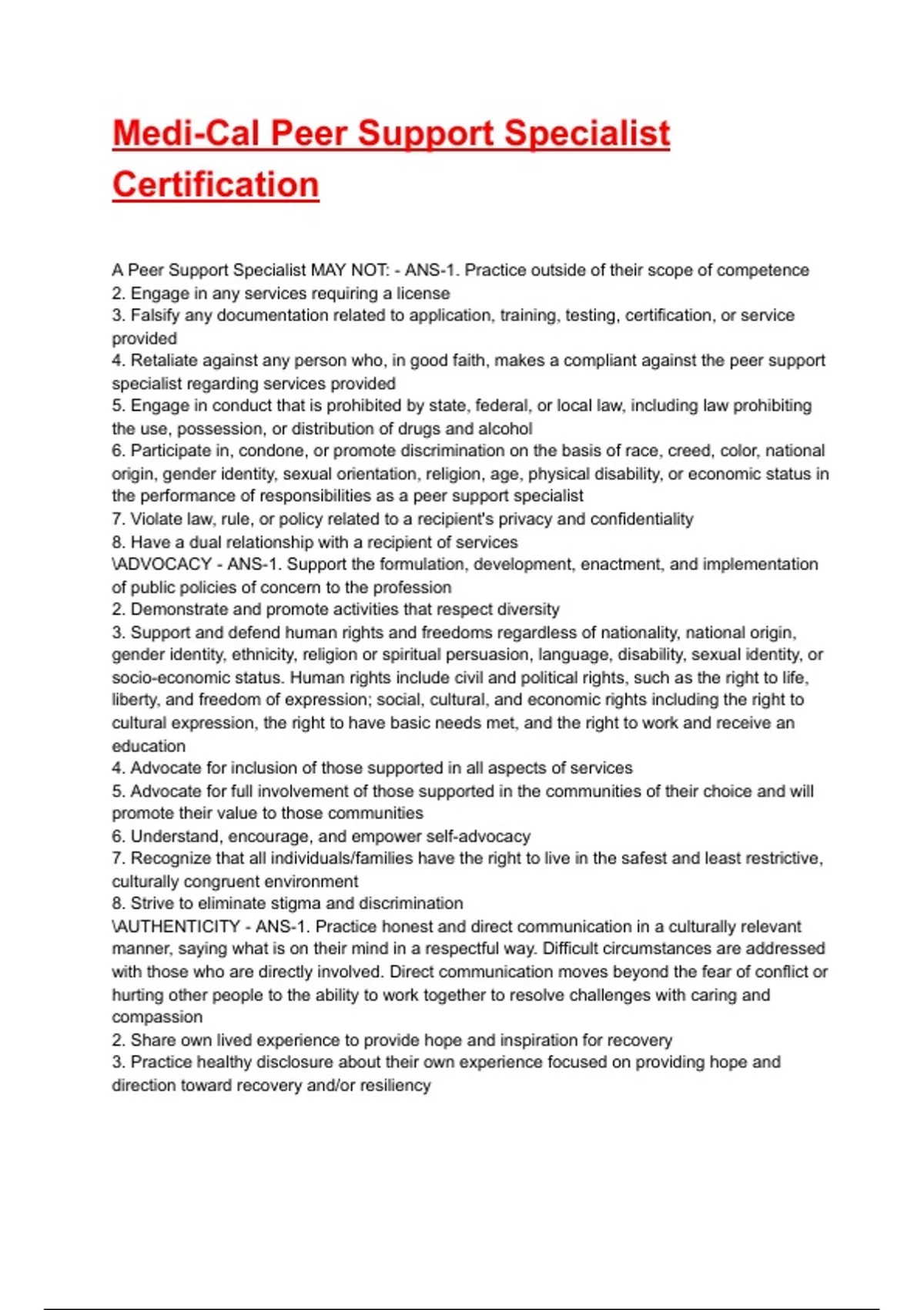 Medi-Cal Peer Support Specialist Certification Exam 2025/2026 Questions With Completed & Verified Solutions.
