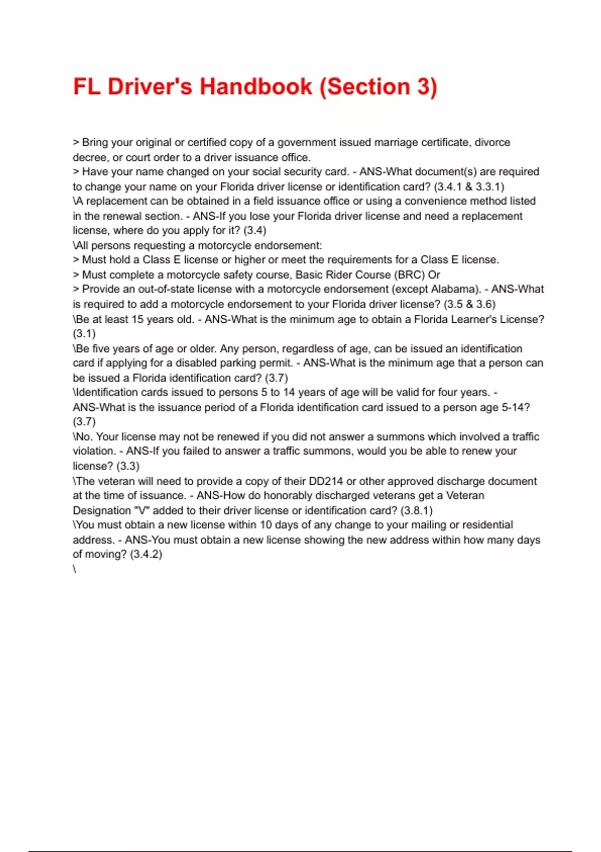 FL Driver's Handbook (Section 3)