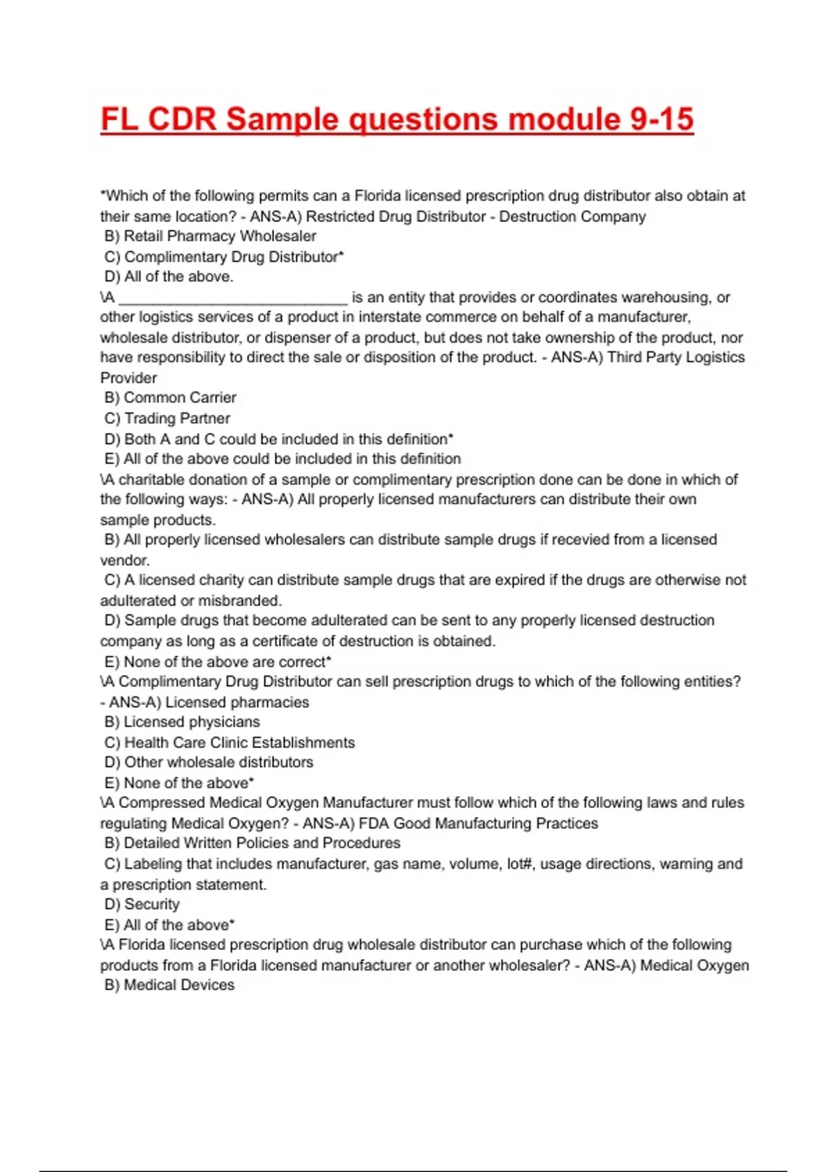 FL CDR Sample questions module 9-15