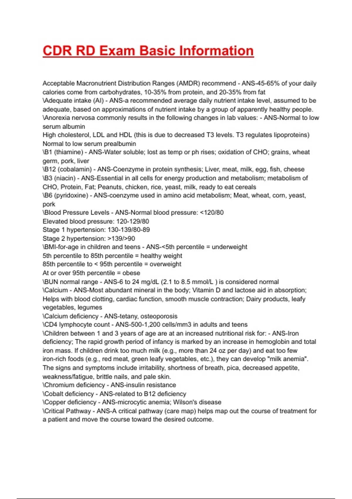 CDR RD Exam Basic Information