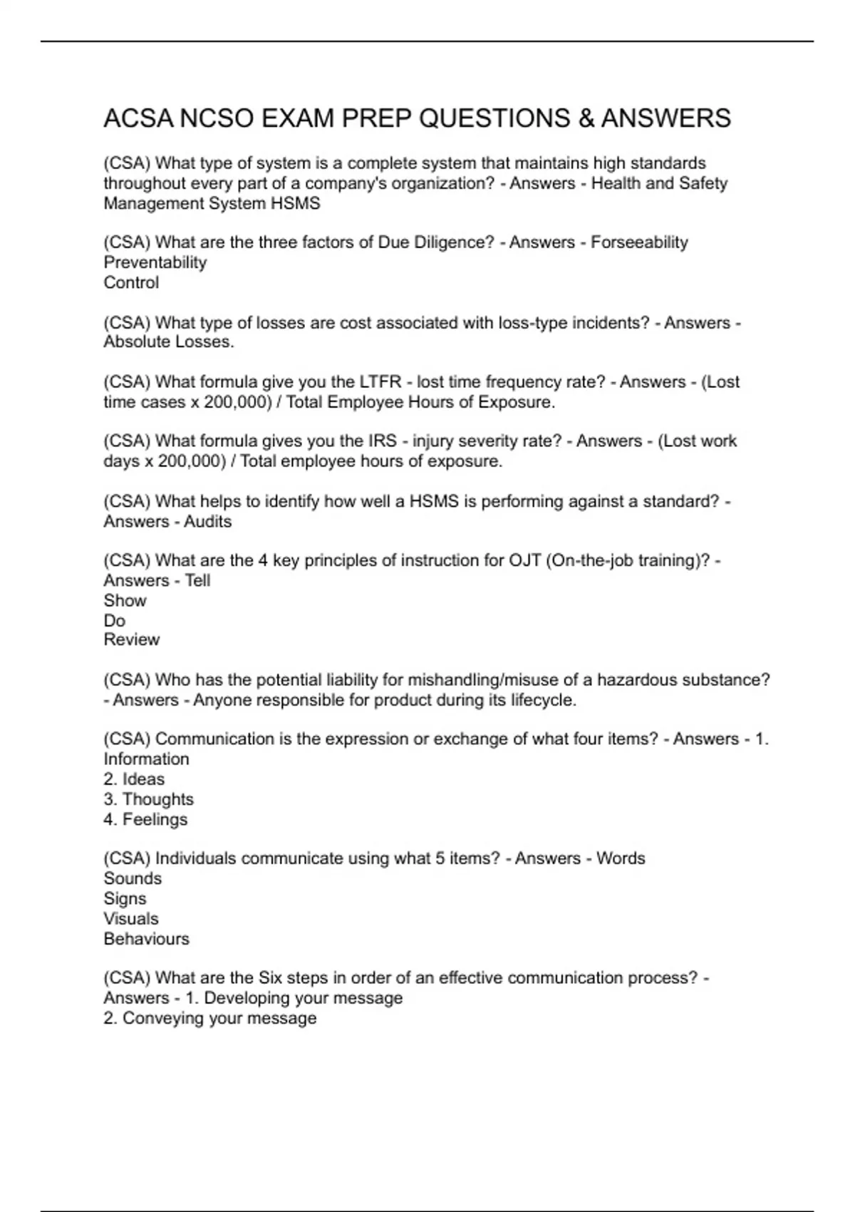 ACSA NCSO EXAM PREP QUESTIONS & ANSWERS