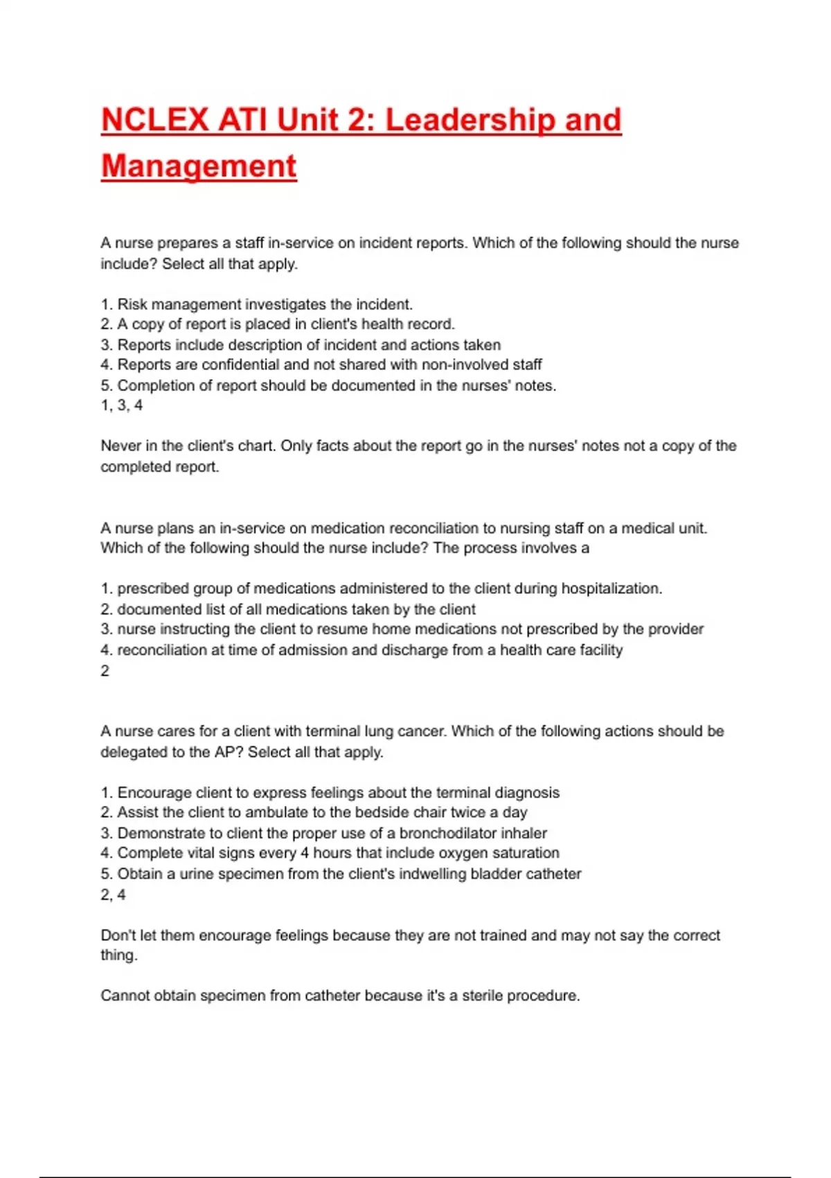 NCLEX ATI Unit 2: Leadership and