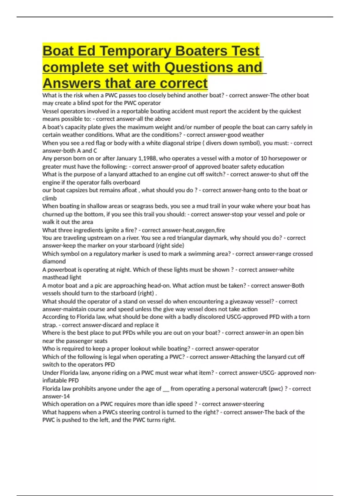Under Florida law, anyone riding on a PWC must wear what item? - correct answer-USCG- approved non-
