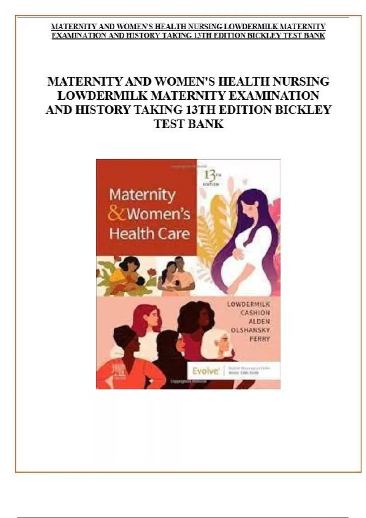 TEST BANK - MATERNITY AND WOMEN'S HEALTH NURSING LOWDERMILK MATERNITY EXAMINATION AND HISTORY TAKING 13TH EDITION BICKLEY