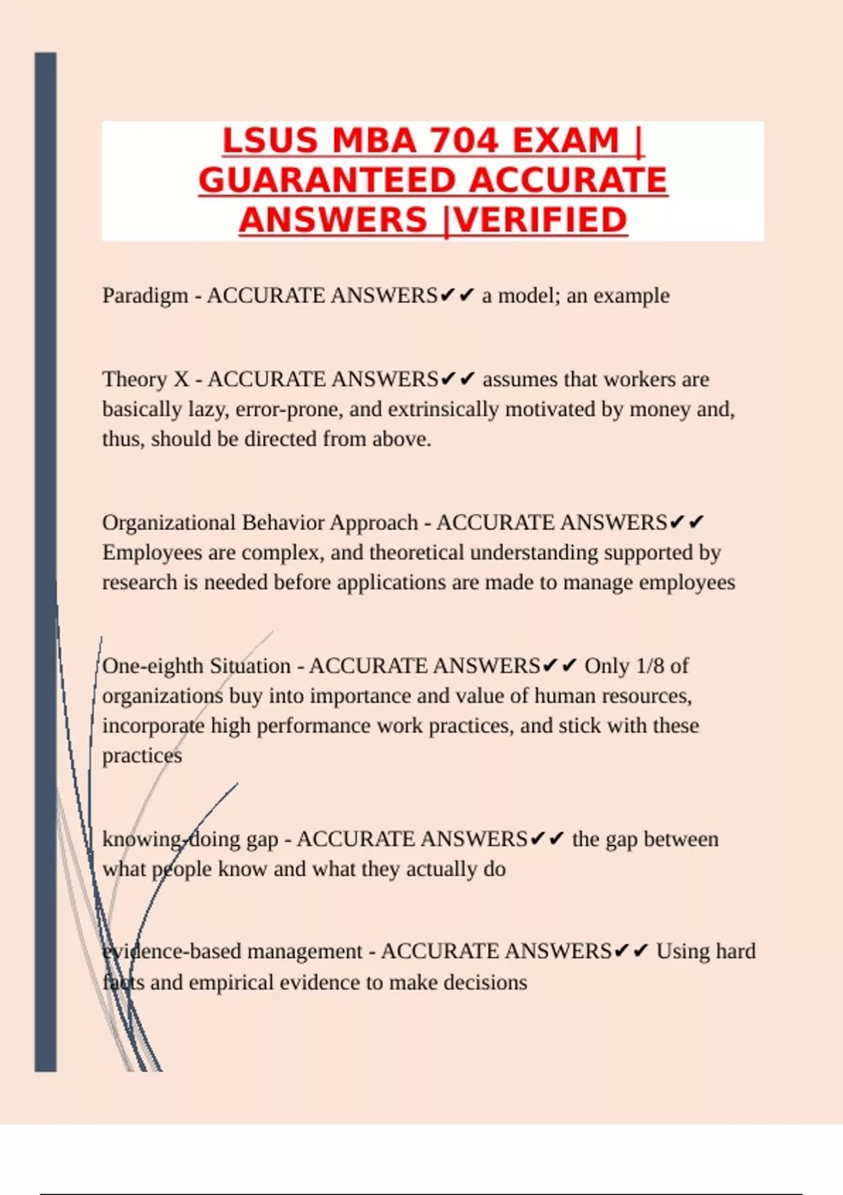 LSUS MBA 704 EXAM |GUARANTEED ACCURATE ANSWERS |VERIFIED