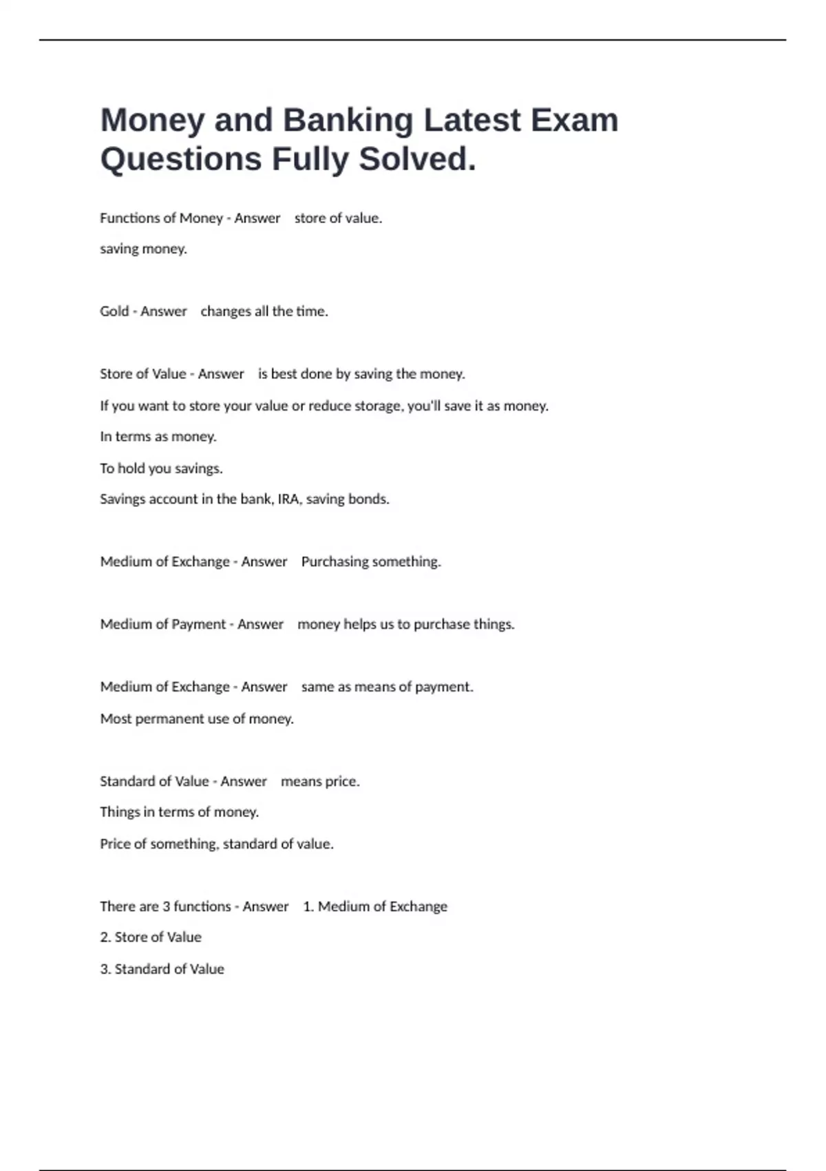 Money and Banking Latest Exam Questions Fully Solved.