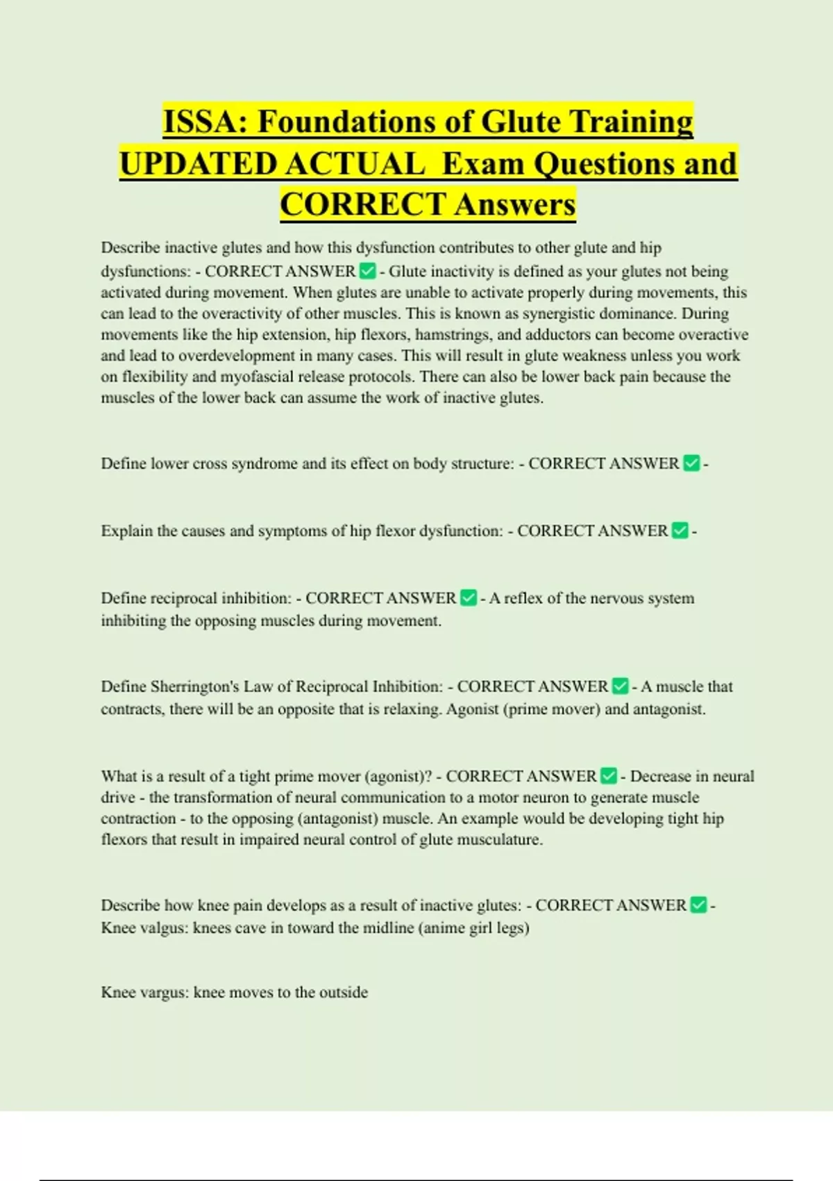 ISSA: Foundations of Glute Training UPDATED ACTUAL Exam Questions and CORRECT Answers