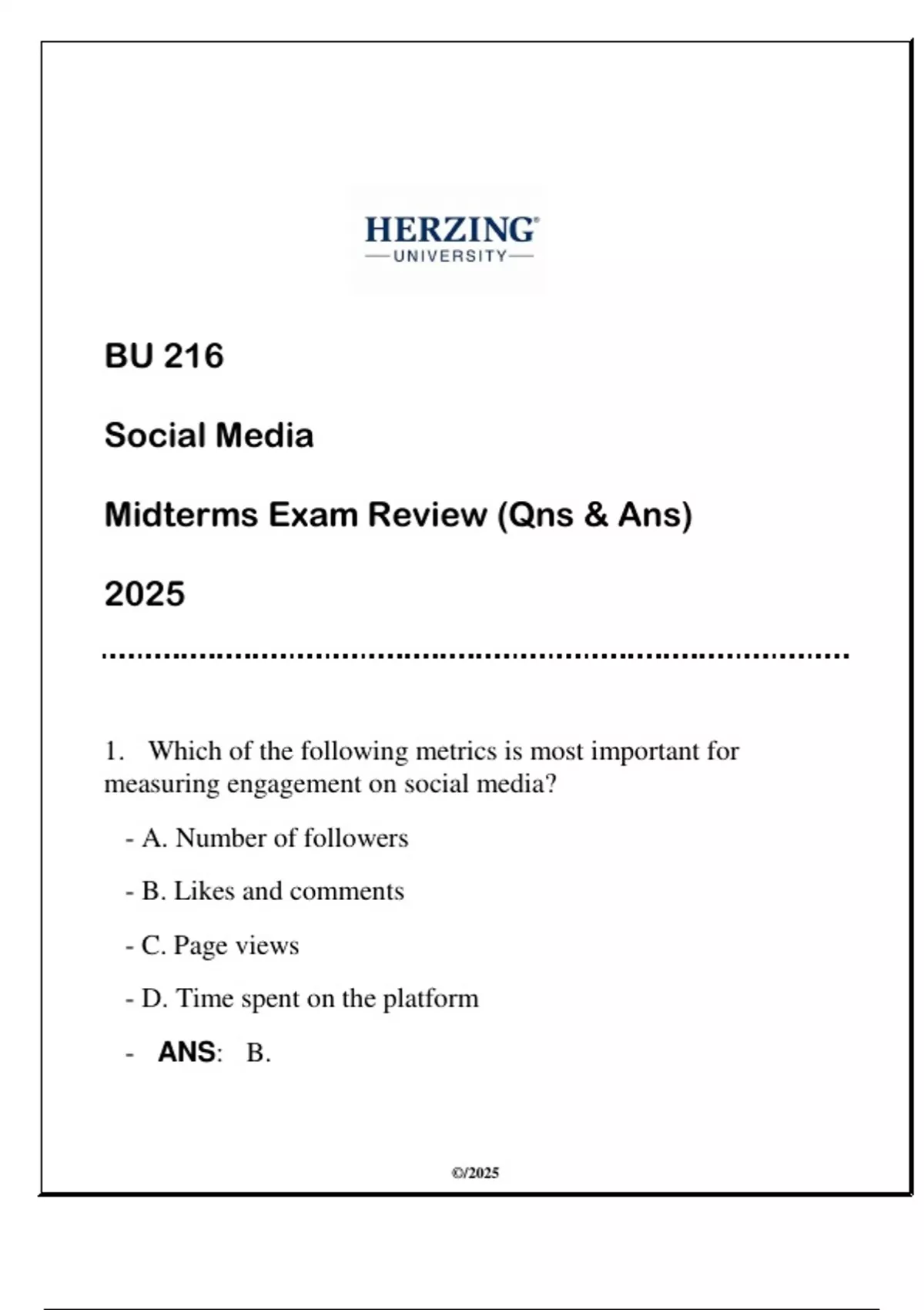 BU 216 Social Media (HU) Midterms Qns & Ans 2025BU 216 Social Media (HU) Midterms Qns & Ans 2025BU 216 Social Media (HU) Midterms Qns & Ans 2025