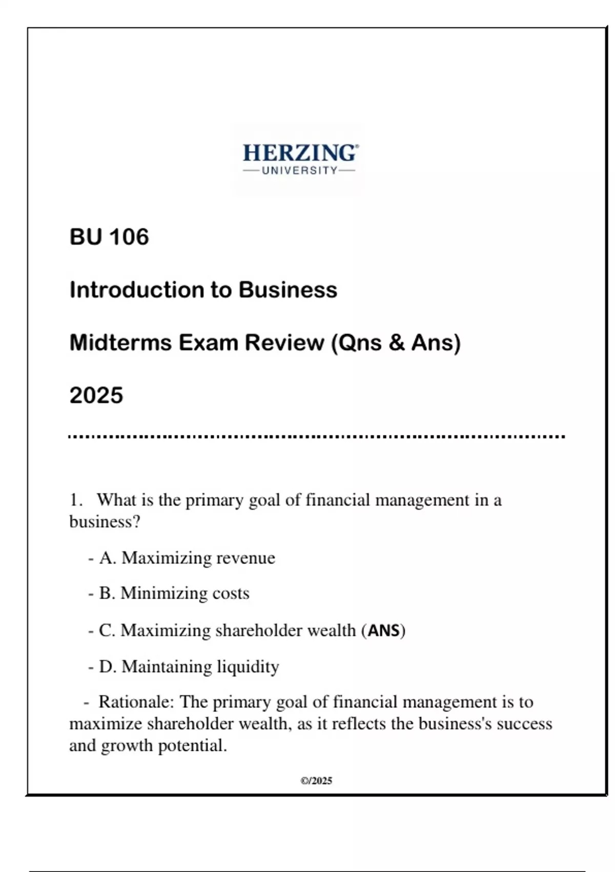 BU 106 Introduction to Business (HU) Midterms Qns & Ans 2025.BU 106 Introduction to Business (HU) Midterms Qns & Ans 2025.BU 106 Introduction to Business (HU) Midterms Qns & Ans 2025.