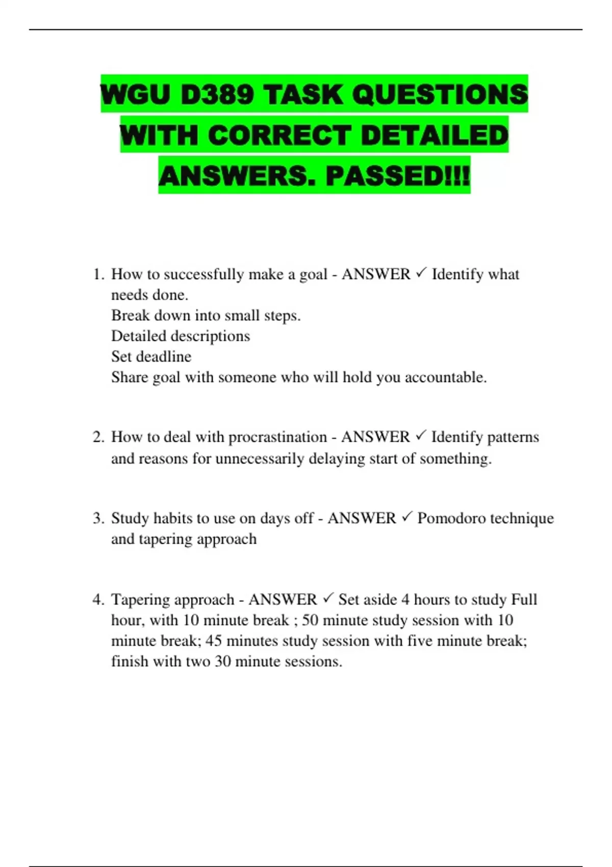4. Tapering approach - ANSWER 🗸 Set aside 4 hours to study Full