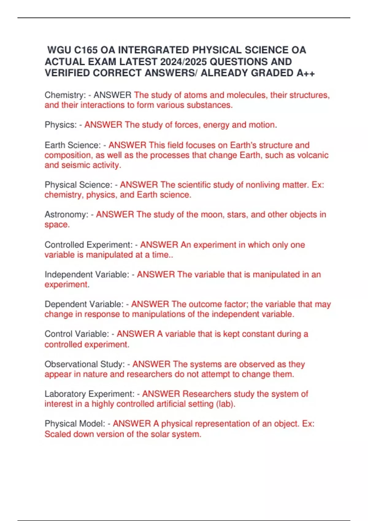 VERIFIED CORRECT ANSWERS/ ALREADY GRADED A++