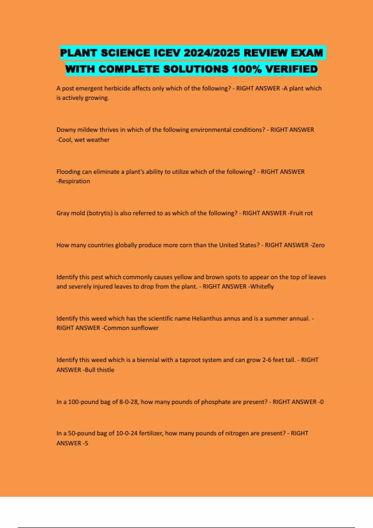 PLANT SCIENCE ICEV 2024/2025 REVIEW EXAM WITH COMPLETE SOLUTIONS 100% VERIFIED