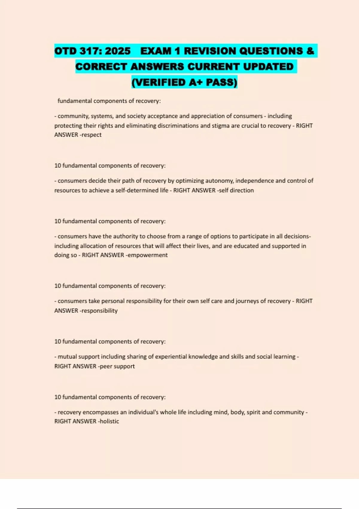 - consumers take personal responsibility for their own self care and journeys of recovery - RIGHT