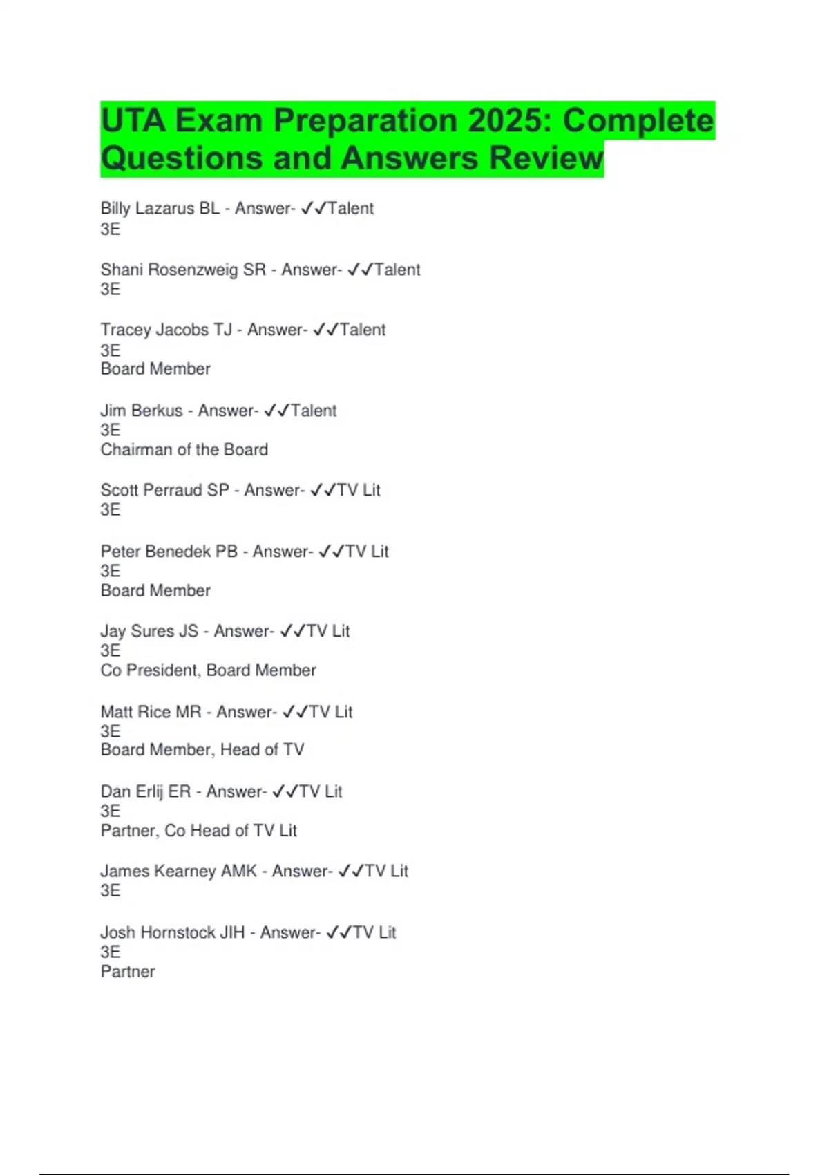 Jay Sures JS - Answer- ✔✔TV Lit