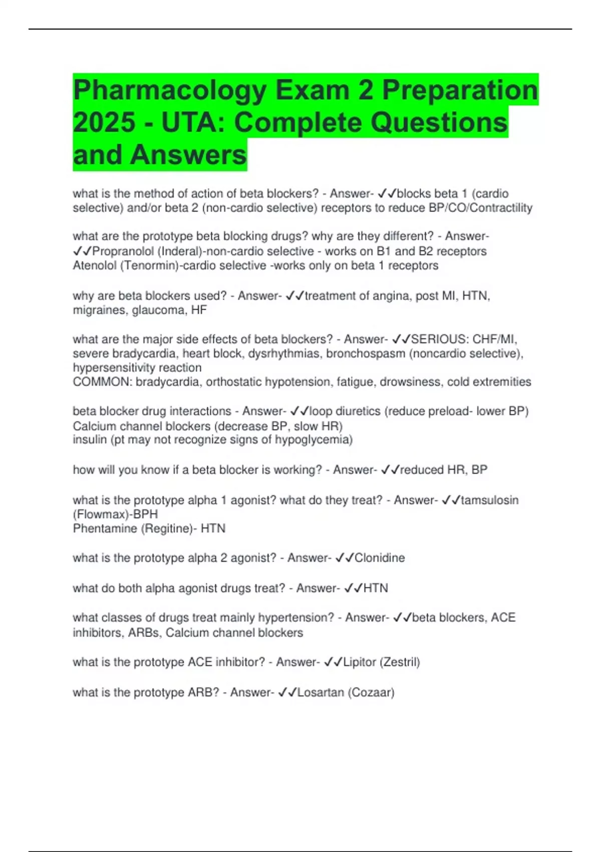 what classes of drugs treat mainly hypertension? - Answer- ✔✔beta blockers, ACE