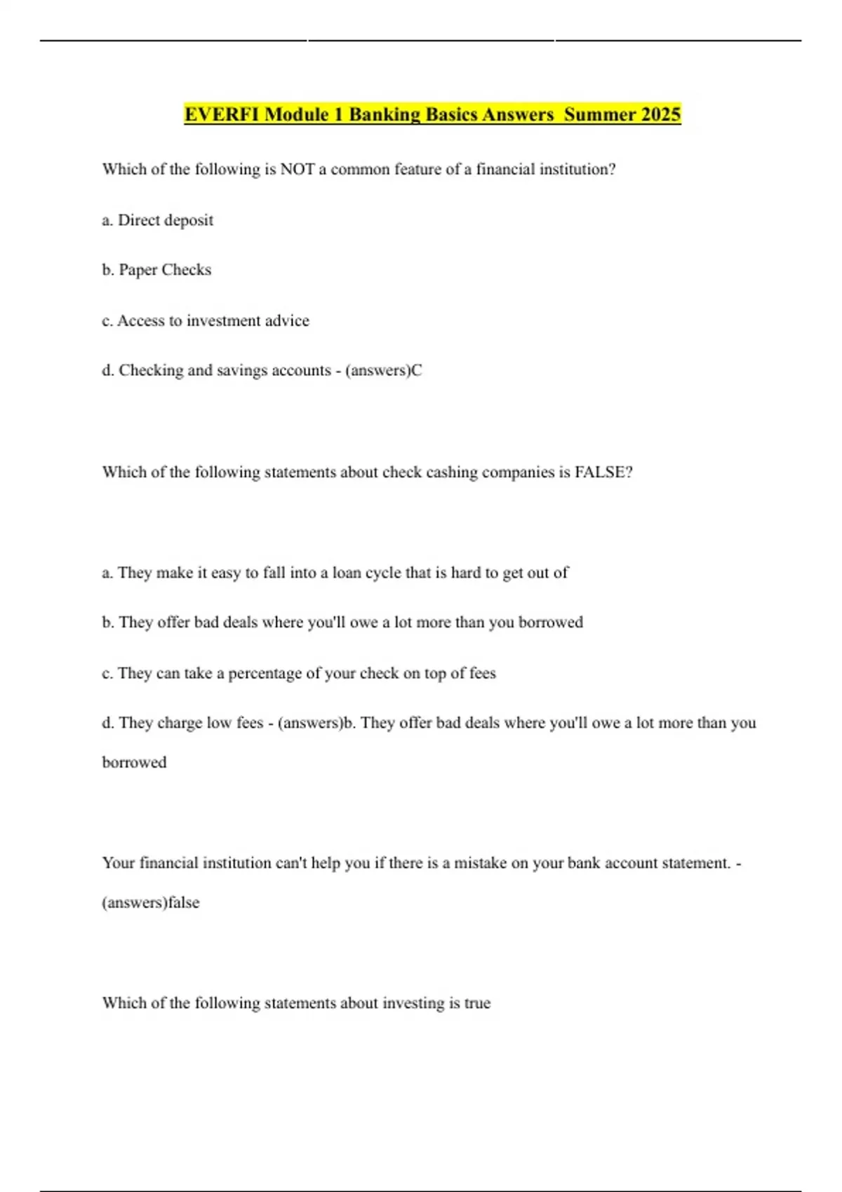 EVERFI Module 1 Banking Basics Answers_Summer 2025