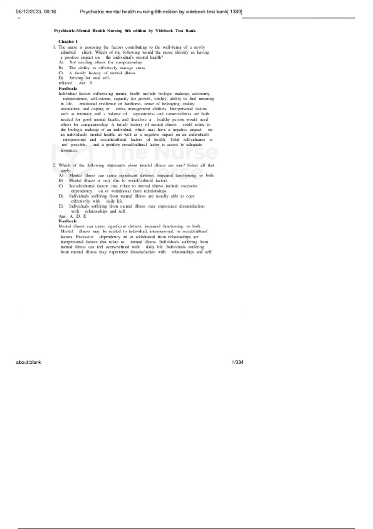 06/12/2023, 00:16 Psychiatric mental health nursing 8th edition by videbeck test bank[ 1389]