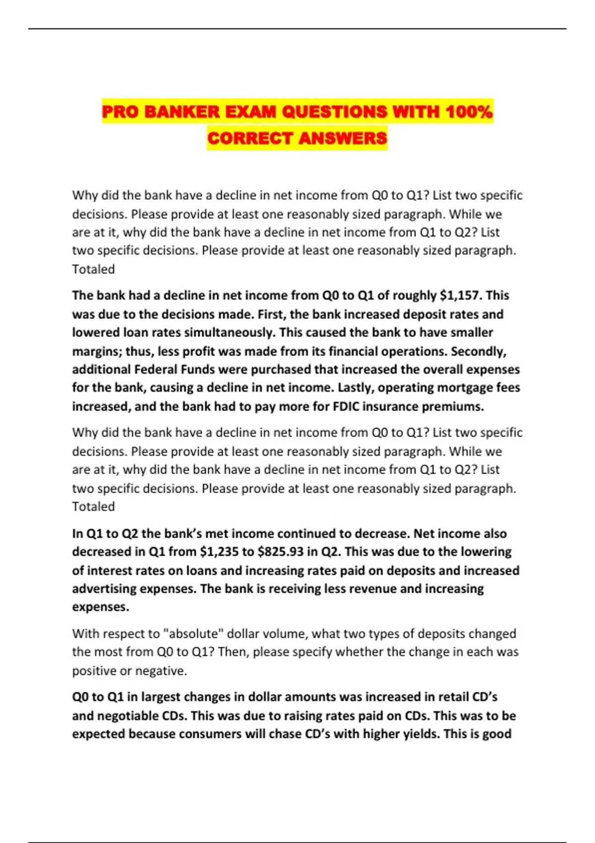 PRO BANKER EXAM QUESTIONS WITH 100%