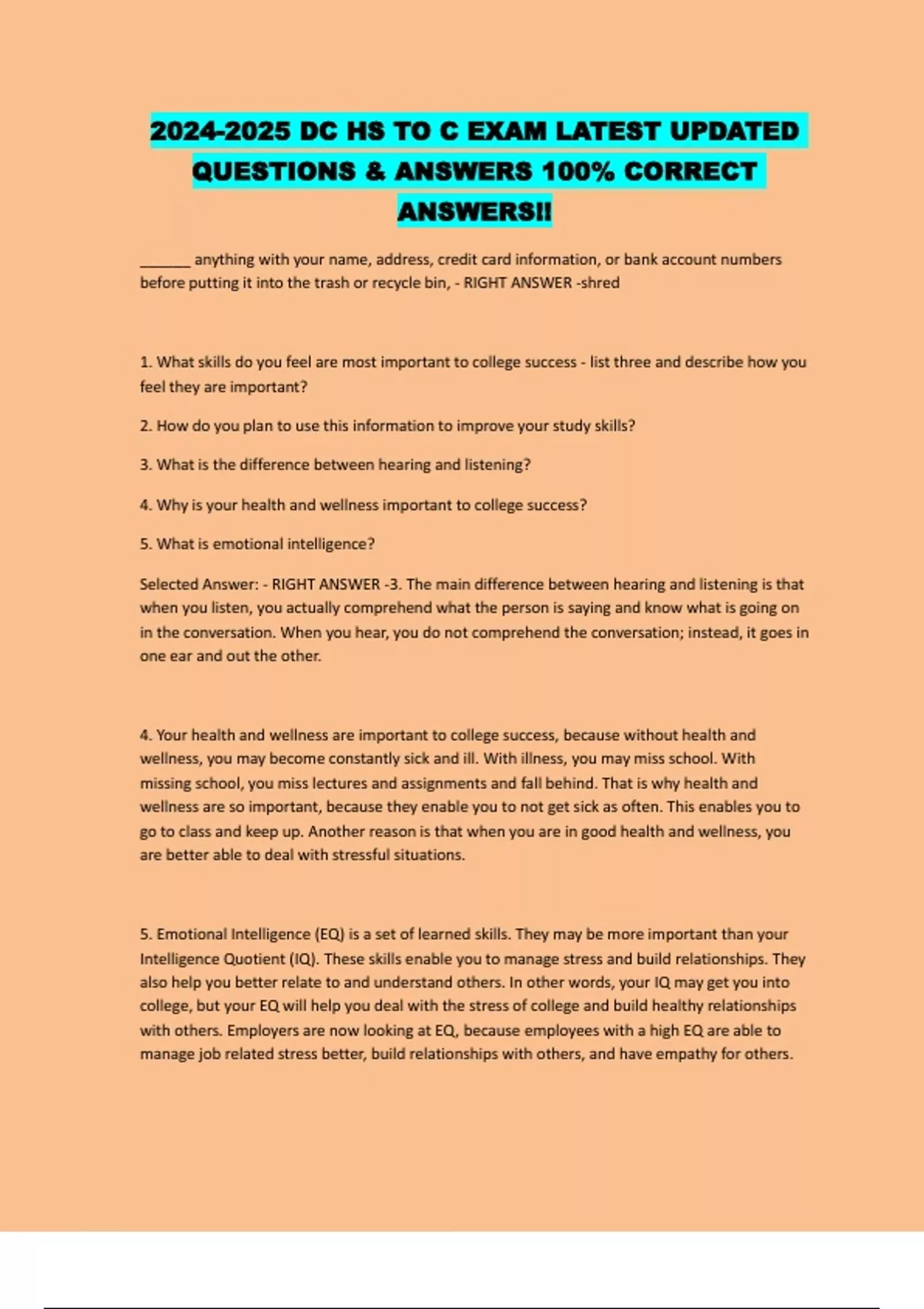 2024-2025 DC HS TO C EXAM LATEST UPDATED