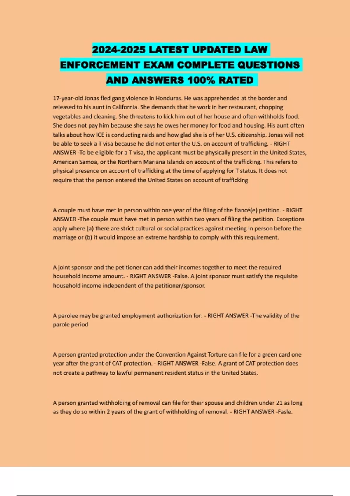 LATEST UPDATED LAW ENFORCEMENT EXAM COMPLETE QUESTIONS AND ANSWERS 100% RATED