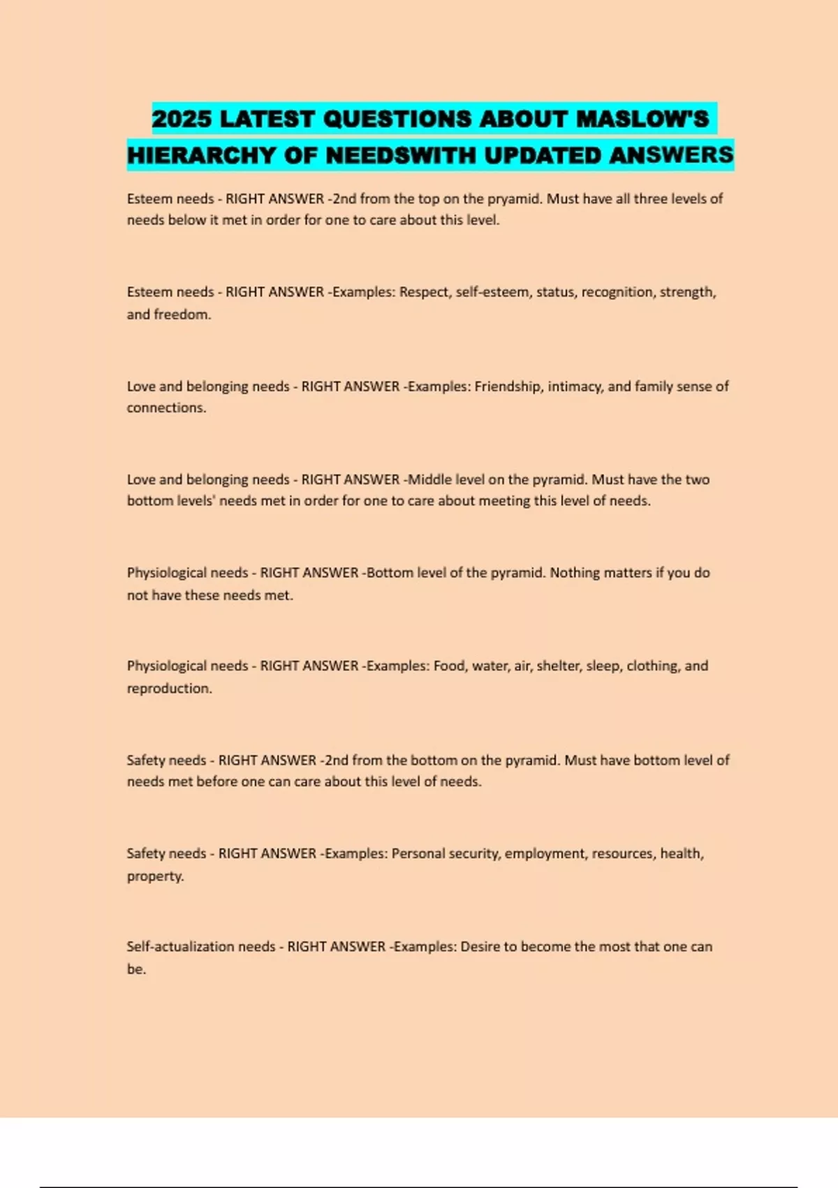 HIERARCHY OF NEEDSWITH UPDATED ANSWERS