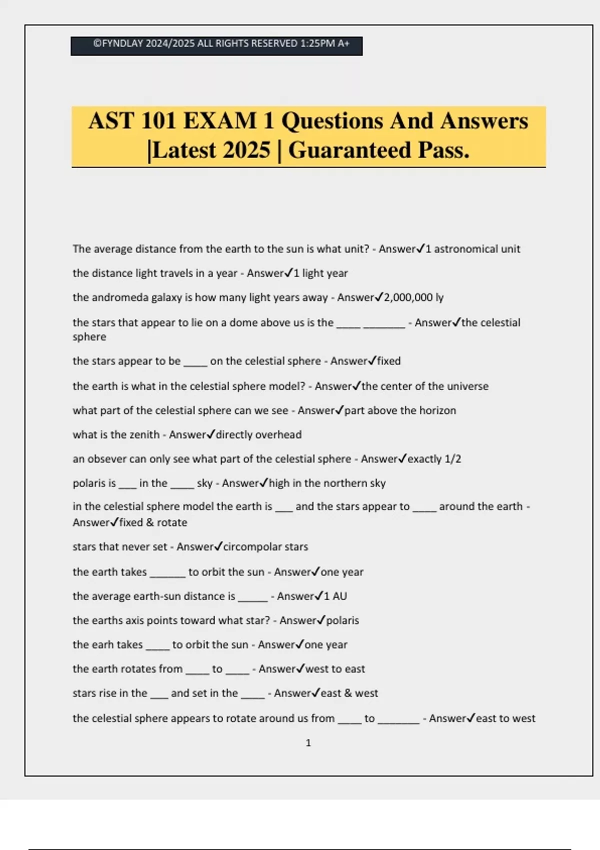 The average distance from the earth to the sun is what unit? - Answer✔1 astronomical unit