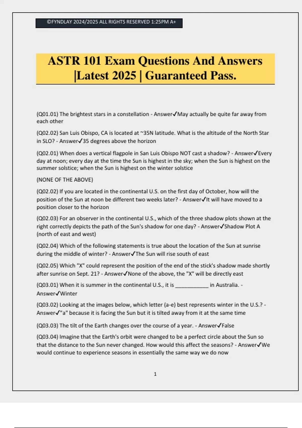 ASTR 101 Exam Questions And Answers