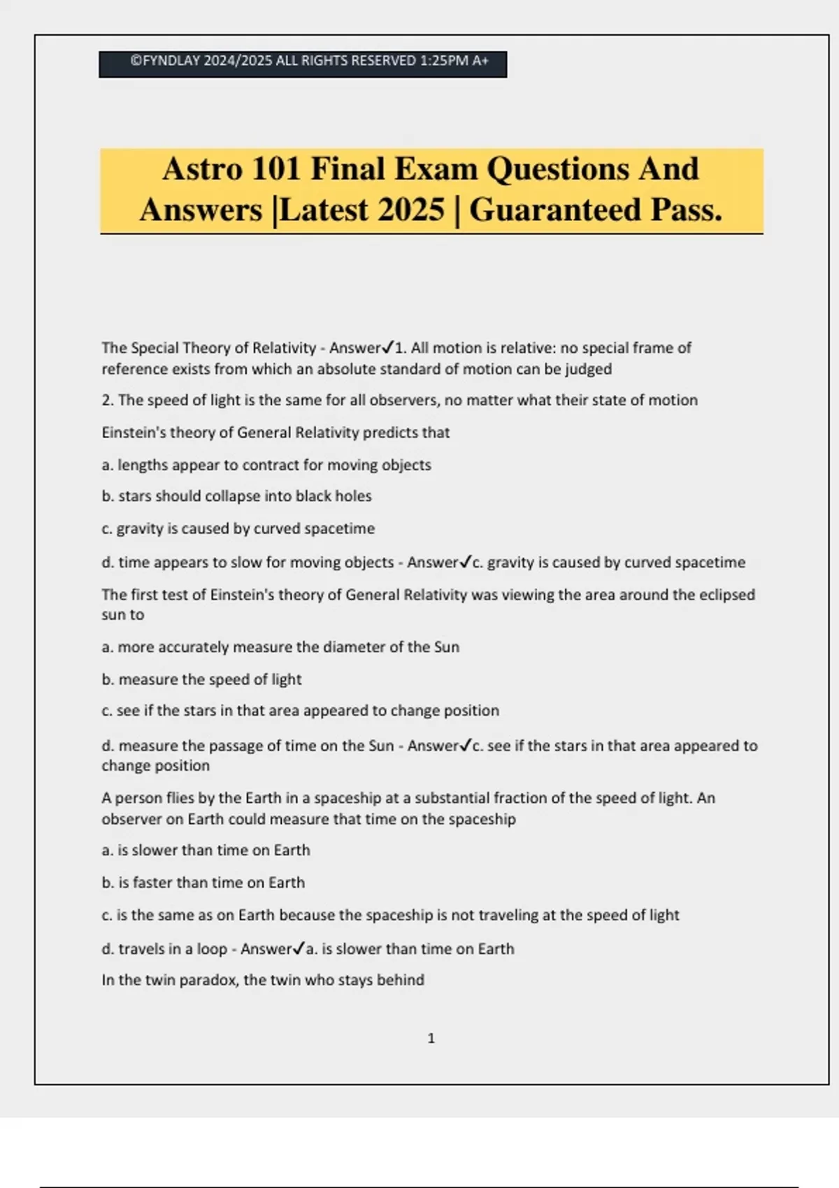 d. travels in a loop - Answer✔a. is slower than time on Earth