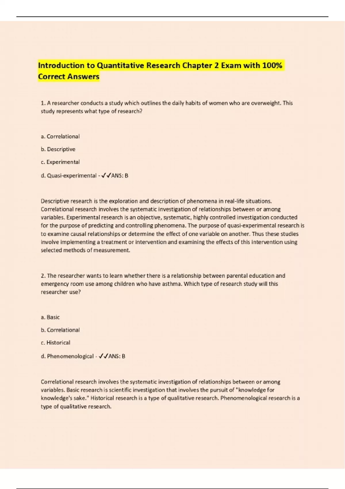Introduction to Quantitative Research Chapter 2 Exam with 100% Correct Answers