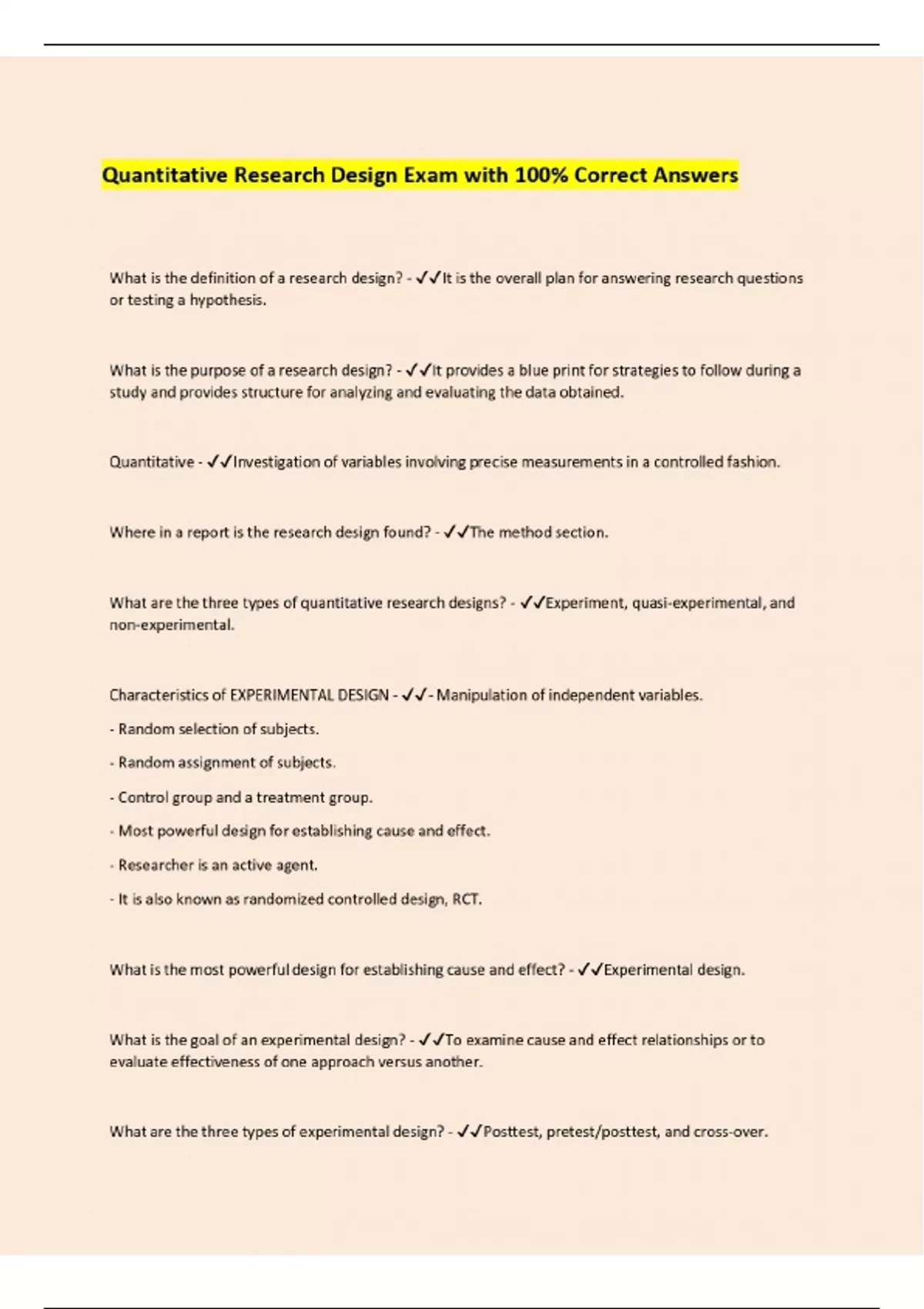 quantitative research design exam with 100 correc
