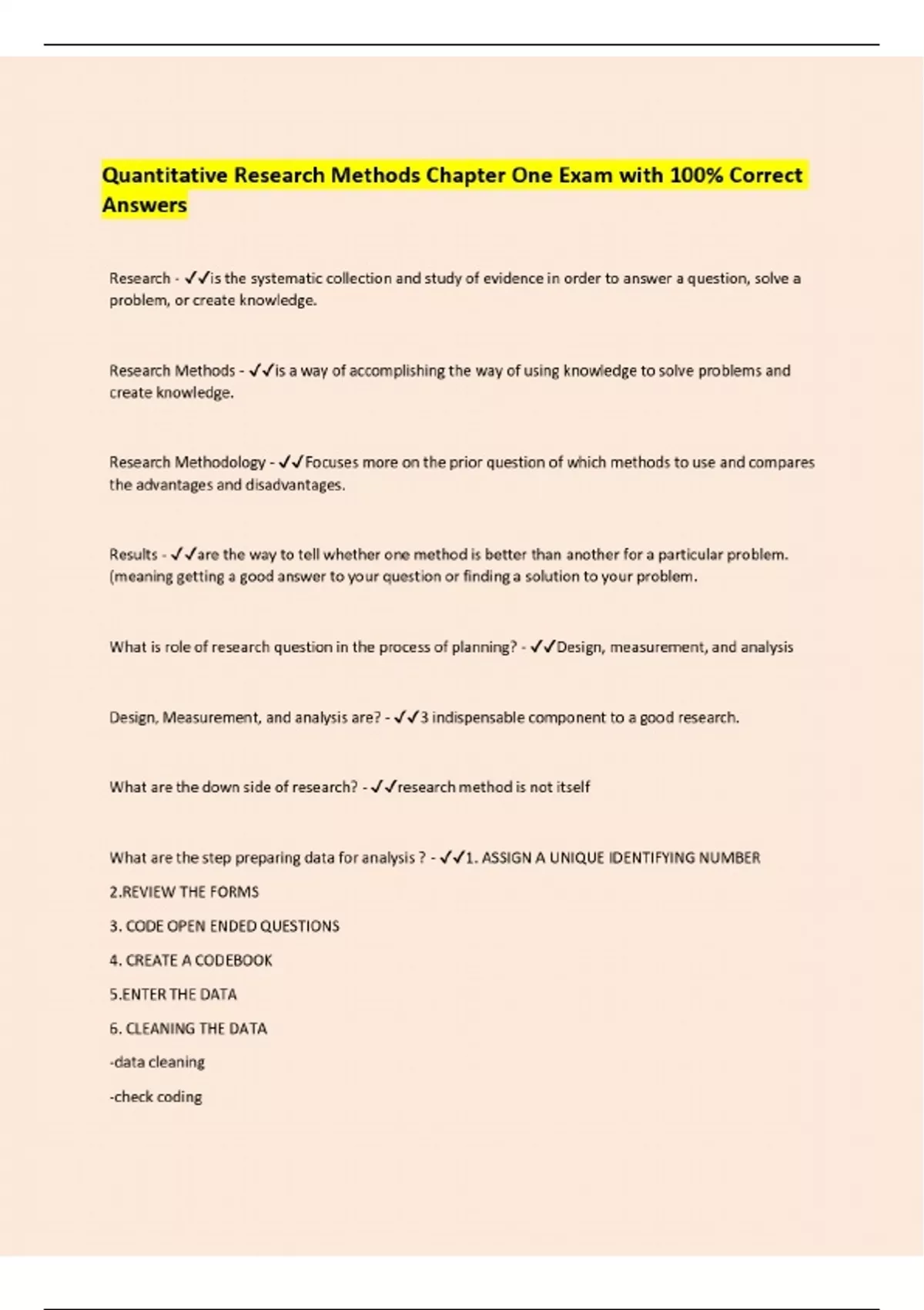 Package deal ::: Quantitative Research Exams 2024-2025 with 100% Correct Answers