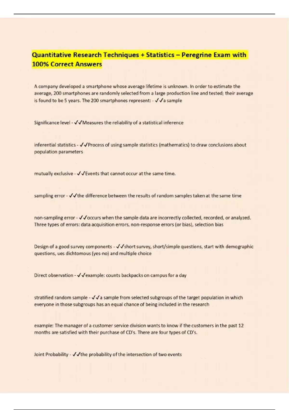 Quantitative Research Techniques + Statistics – Peregrine Exam with 100% Correct Answers