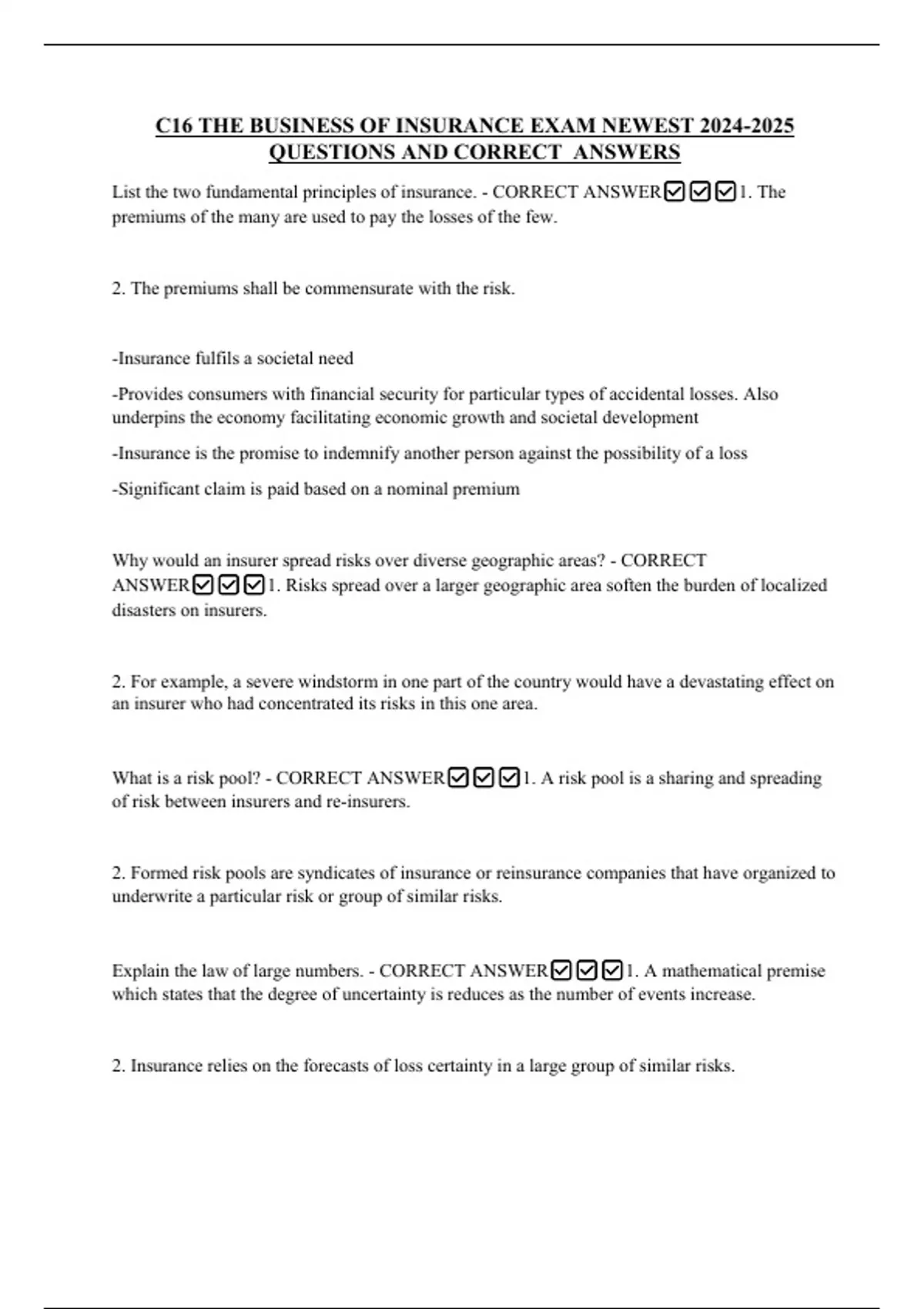 What is a risk pool? - CORRECT ANSWER✅✅✅1. A risk pool is a sharing and spreading